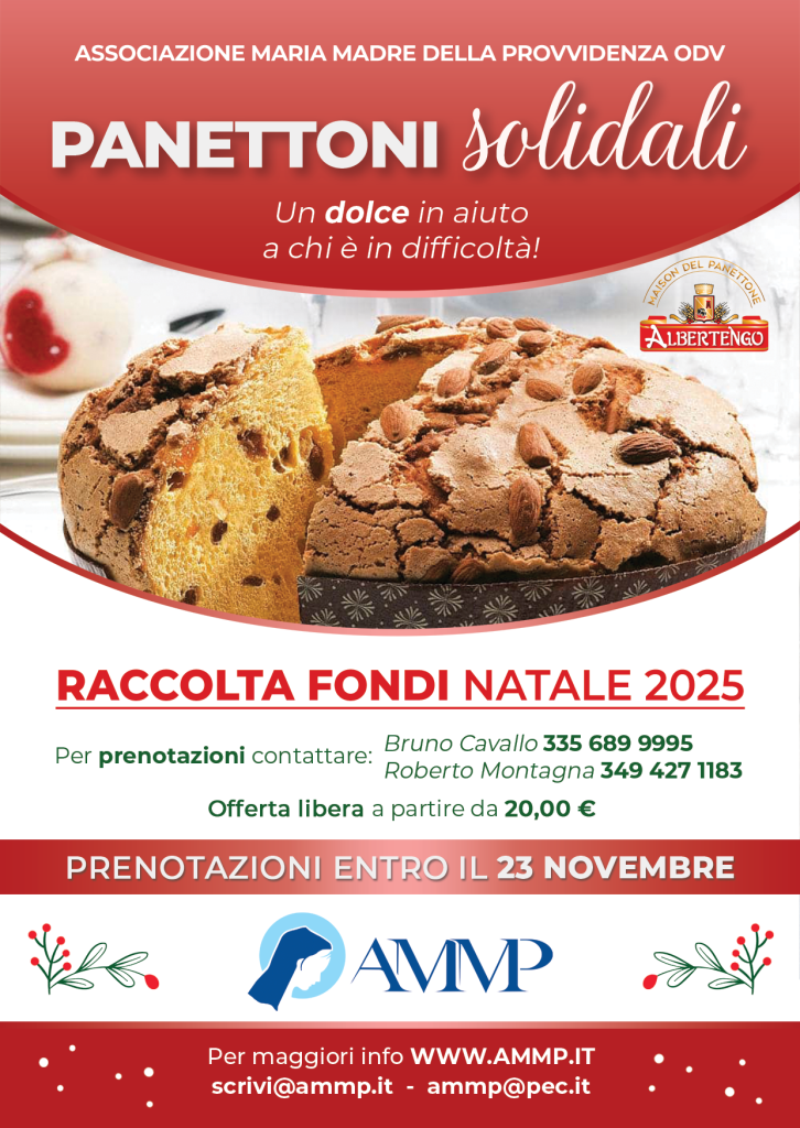 Con un’offerta libera a partire da 20€, puoi prenotare i Panettoni Solidali di AMMP e sostenere le nostre attività benefiche.